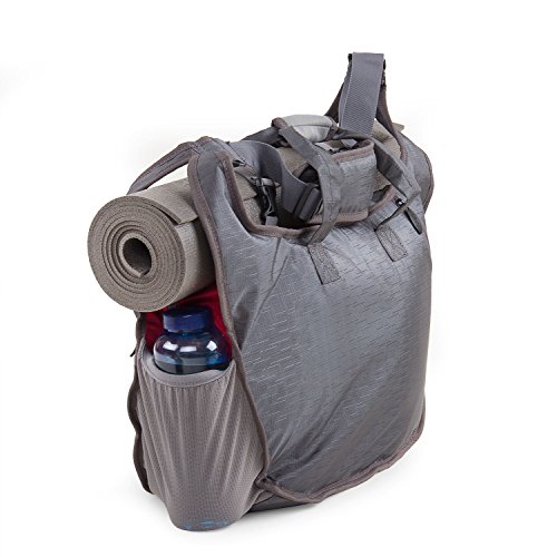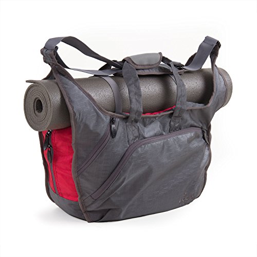 Yoga-, Sport- und Freitzeittasche im XL Format! In dieser großen Tasche findengarantiert alle deine Sachen Platz. Dabei ist sie nicht nur groß und extrem stylish, sondern dank vieler kleiner extra Taschen auch noch ungemein praktisch. Deine Yogamatte lässt sich mittels zweier elastischer Bänder mit Clip-Verschluss längs auf der Tasche anbringen.