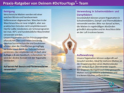 MarkenqualitätMit den Yoga-Matten „Ravana“ von #DoYourYoga© erwirbst Du hochwertige Designer Marken-Yogamatten für mehr Spaß bei Deinem Yogasport. Erstklassige Verarbeitung, außergewöhnliche Designs sowie das strapazierfähige Material machen die „Ravana“ zur ersten Wahl für Yogis und Yoga-Studios, die Wert auf etwas Besonderes legen.Deine VorteileUnsere Yogamatten sind sehr leicht zusammenrollbar, pflegeleicht und bedenkenlos abwaschbar. Das Material ist hochwertig, rutsch- und abriebfest, hautfreundlich und frei von Schadstoffen. Die Yogamatte ist zudem sehr leicht und daher gut zu verstauen, also geradezu ideal für das Yogatraining zu Hause und den bequemen Transport zum Yogastudio.Geeignet fürYoga, Aerobic, Pilates, Gymnastik, Rücken- und Bauchmuskeltraining und Schwangerschafts-Gymnastik. Ideal für Fitness-Studios, Yogaschulen, für das Training zu Hause und in der Freizeit.Unabhängige QualitätsprüfungUnsere Produkte sind von den unabhängigen und renommierten Instituten SGS und INTERTEK geprüft und verifiziert worden. #DoYourYoga© ist eine Marke der #DoYourSports GmbH.