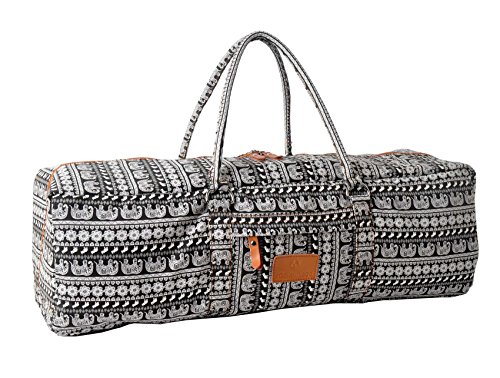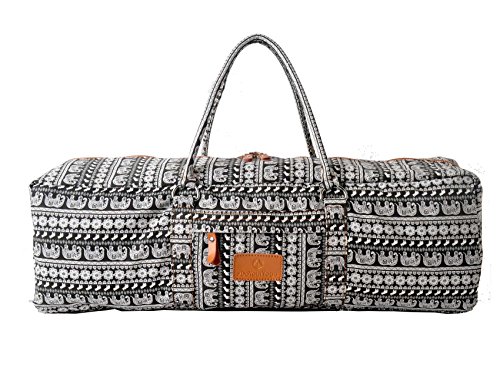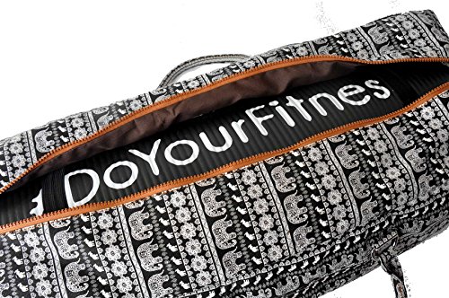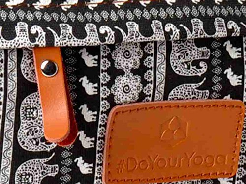 Urlaub vom Alltag – Die Yoga-Praxis besteht aus verschiedenen körperlichen und geistigen Übungen, die für Entschleunigung und Entspannung sorgen. Equipment bedarf es dazu recht wenig. Unverzichtbar für jeden Yogi und jeden, der es werden möchte, sind jedoch Yogamatte, Yoga-Gurt und Yoga-Block. Unser #DoYourYoga Yogabag „Ghanpati“ bietet viel Stauraum für Yoga-Matten und Yoga-Zubehör und ist damit der ideale Begleiter für alle, die Yoga nicht nur innerhalb der eigenen vier Wände ausüben und ihre Yogamatte unterwegs sicher verstaut wissen möchten. Dank ihrer Maße (ca. 64 x 23 x 22 cm) ist unsere Yogatasche „Ghanpati“ auch für den Transport extra dicker Yoga-Matten bis zu einer Größe von 186 x 62 x 1,5cm bestens geeignet. Die Yogatasche aus 100% Canvas bzw. Mischgewebe-Segeltuch-Stoff ist widerstands- und strapazierfähig und pflegeleicht. Unsere Tragetasche kann bis zu 40 Grad bedenkenlos in der Maschine mitgewaschen werden. Gefertigt wird die Yogabag in liebevoller Hand- und Detailarbeit in der Manufaktur der Familie Fu in Südchina, mit der uns eine langjährige, freundschaftliche Geschäftsbeziehung verbindet. Dank unseres engen Kontaktes mit unserem chinesischen Partner ist unser hoher Anspruch an Qualität, Material und Verarbeitung stets gewährleistet. Davon überzeugen wir uns auch bei unseren regelmäßigen Reisen nach Fernost immer wieder persönlich. Hergestellt unter ökologischen Gesichtspunkten, ist unsere Yogatasche garantiert frei von Schadstoffen. Der durchdachte Doppel-Reißverschluss, ein verstellbarer Tragegurt und ein praktisches Zusatzfach für Yoga-Zubehör, Smartphone und Schlüssel machen unsere Yogabag „Ghanpati“ zu einem vielseitigen Yoga-Accessoire, ihr unverwechselbares Design zu einem echten Hingucker. Als Qualitätsmerkmal befindet sich auf jeder unserer Taschen unser #DoYourYoga©-Markenemblem aus geprägtem Leder.