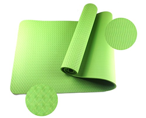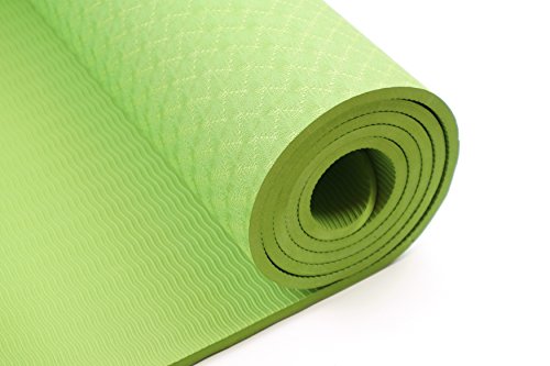 Good Times Yogamatte, TPE Matte, rutschfest, schadstofffrei (ohne Latex und PVC), umweltfreundlich, hypoallergen und hautfreundlich, SGS geprüft, Gymnastikmatte, Fitnessmatte, Sportmatte, Trainingsmatte mit Tasche und Trageband Die qualitativ hochwertige Yogamatte lässt keine Wünsche offen und ist perfekt für das Training im Fitnessstudio, oder zu Hause. Unsere Matte ist in vier verschiedenen Farben erhältlich und eine trifft bestimmt auch Ihren Geschmack. Unsere Yogamatte ist durch Ihr Material aus hochwertigen, rutschfesten und besonders umweltfreundlichen TPE perfekt für Ihre Übungen geeignet. Unsere Matte kann nicht nur für Yoga, sondern auch für Aerobik, Pilates, Gymnastik, Schwangerschaftsgymnastik, zum Turnen, Rückenschule, Bauchmuskeltraining, oder einfach nur als Sitzunterlage für Sie und Ihre Familie genutzt werden. Durch das mitgelieferte und farblich auf die Yogamatte abgestimmte Trageband kann die Matte zusammengerollt und platzsparend verstaut werden. Zudem kann das Band auch als Trageband umfunktioniert werden. Unsere Yogamatte wird in einer wiederverwendbaren Tasche geliefert.