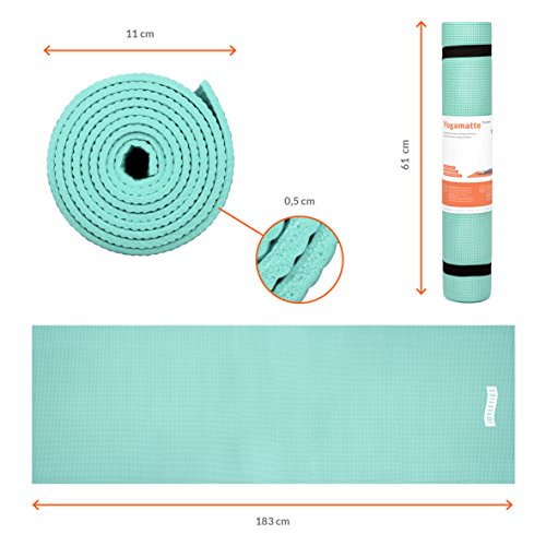 Die rutschfeste, strapazierfähige und abriebfeste Matte für Yoga, Pilates, Bodentraining oder Gymnastik – handlich und leicht in vielen Farben erhältlich – Maße 183 x 61 x 0,5 cm