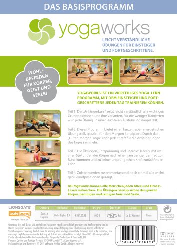 ca. 65 Min., DVD Yoga leicht gemacht. Einfacher strukturiert und konzipiert geht es gar nicht. Yogaworks ist ein vierteiliges Yoga-Lernprogramm, mit dem Einsteiger und Fortgeschrittene jeden Tag trainieren können. Teil 1: Der 'Anfängerkurs' zeigt leicht verständlich alle wichtigen Grundpositionen und ihre Varianten. Für die weniger Trainierten wird jede übung in einer leichteren Ausführung dargestellt. Teil 2: Dieses Programm bietet einen kurzen, aber energetischen übungsteil, speziell für den Morgen konzipiert. Durch das 'Guten-Morgen-Yoga' kann jeder Kraft für die Anforderungen des Tages sammeln.Teil 3: Die übungen 'Entspannung und Energie' lehren, mit welchen Stellungen der Körper nach einem anstrengenden Tag zur Ruhe kommen und zu seiner ursprünglichen Kraft zurückfinden kann.Teil 4: Zuletzt werden zusammenfassend noch einmal alle wichtigen Grundpositionen gezeigt. Bei Yogaworks können alle Menschen jeden Alters und Fitness-Levels mitmachen. Die übungen beanspruchen den ganzen Körper, beruhigen undreinigen Geist und Seele.
