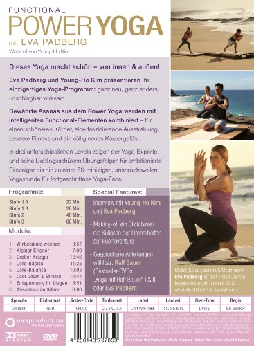 ca. 85 Min., DVD Eva Padberg Power Yoga – Dieses Yoga-Workout macht schön! Yoga-Experte Young-Ho Kim und seine Lieblingsschülerin zeigen ein Power Yoga Workout ohne Kompromisse. Ganz neu, ganz anders, unschlagbar wirksam: Bewährte Asanas, kombiniert mit FUNCTIONAL YOGA Elementen. Für einen schöneren Körper, eine faszinierende Ausstrahlung, bessere Fitness und ein völlig neues Körpergefühl!